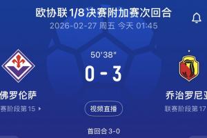 要翻车?欧协联附加赛佛罗伦萨主场0-3落后,总比分被逼平